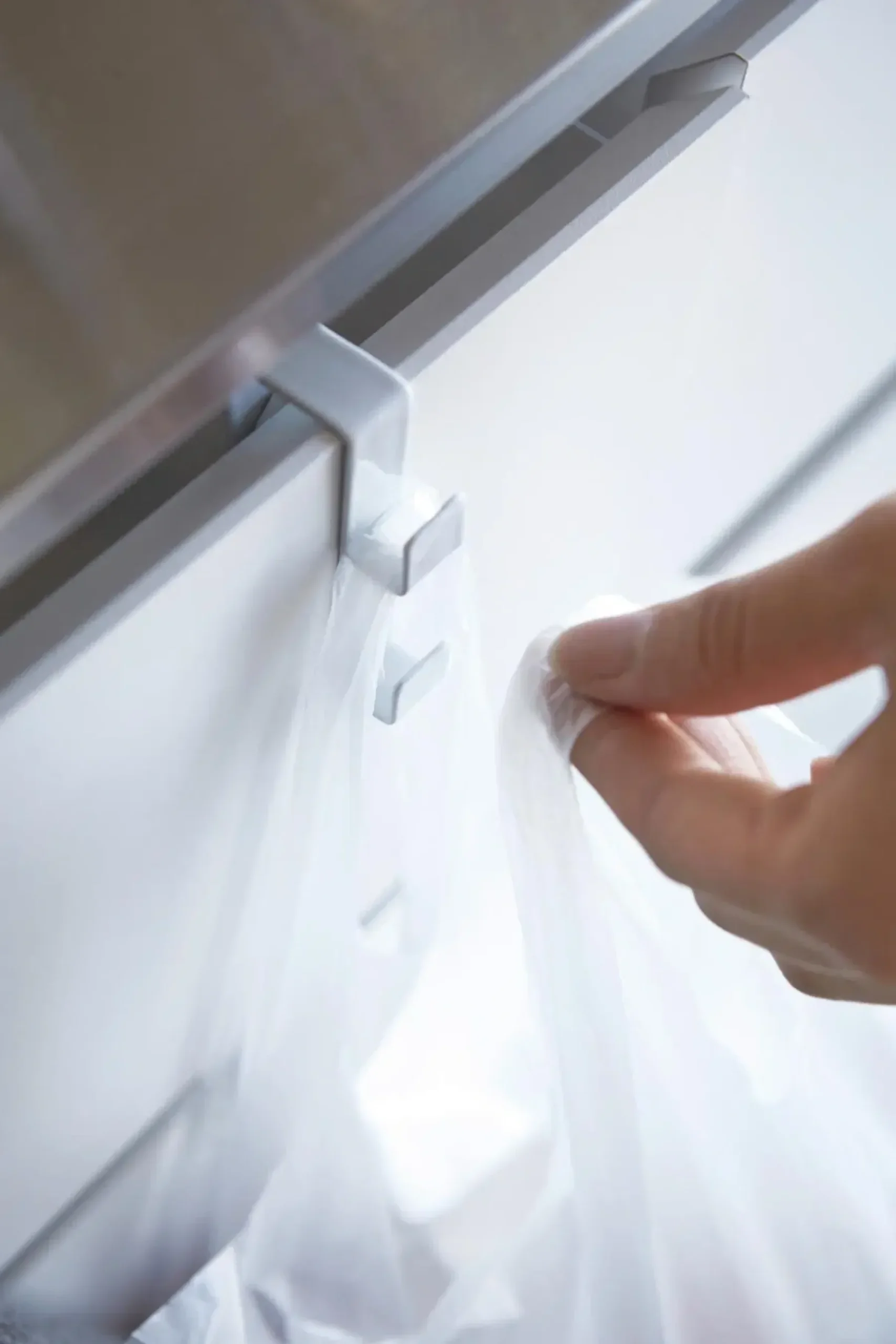 Kaapinoven päälle asetettava teräksinen koukku, joka tuo lisää ripustustilaa esimerkiksi keittiöpyyhkeille tai kauppakasseille. Koukkua ei tarvitse kiinnittää oveen, jolloin sen paikkaa on helppo vaihtaa tarpeen mukaan. Pehmustetarrat ehkäisevät kaapinoven naarmuuntumista ja toimivat myös liukuesteinä. Suunniteltu Japanissa. Materiaali: jauhemaalattu teräs. Pakkauksessa 2 kpl koukkuja.