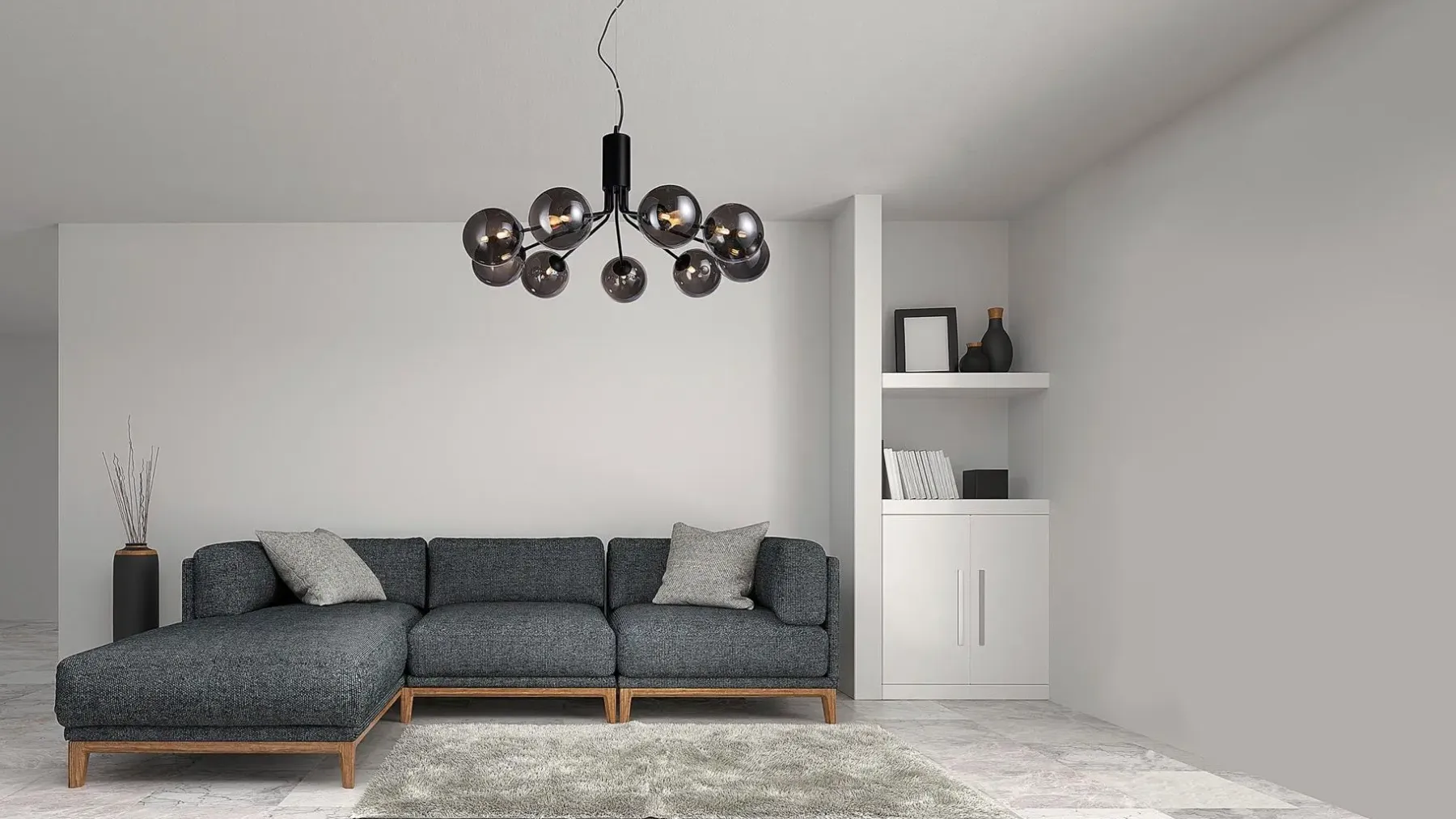 Glasgow 9 on näyttävä kattovalaisin, jossa yhdeksän valopistettä on aseteltu pyöreisiin lasikupuihin, jotka sijaitsevat keskiosasta haarautuvien varsien päissä. Tämä valaisin luo upean valaistuksen laajoihinkin tiloihin ja on samalla käytännöllinen. Helppo koukkukiinnitys, vaijerin pikalukitus sekä kevyt rakenne tekevät asennuksesta vaivatonta. Lisäksi vaihdettavat polttimot takaavat pitkän käyttöiän. Glasgow 9 on saatavilla kahdessa elegantissa väriyhdistelmässä: mattamusta savulasikuvuilla ja messinki shampanjanvärisillä kuvuilla.