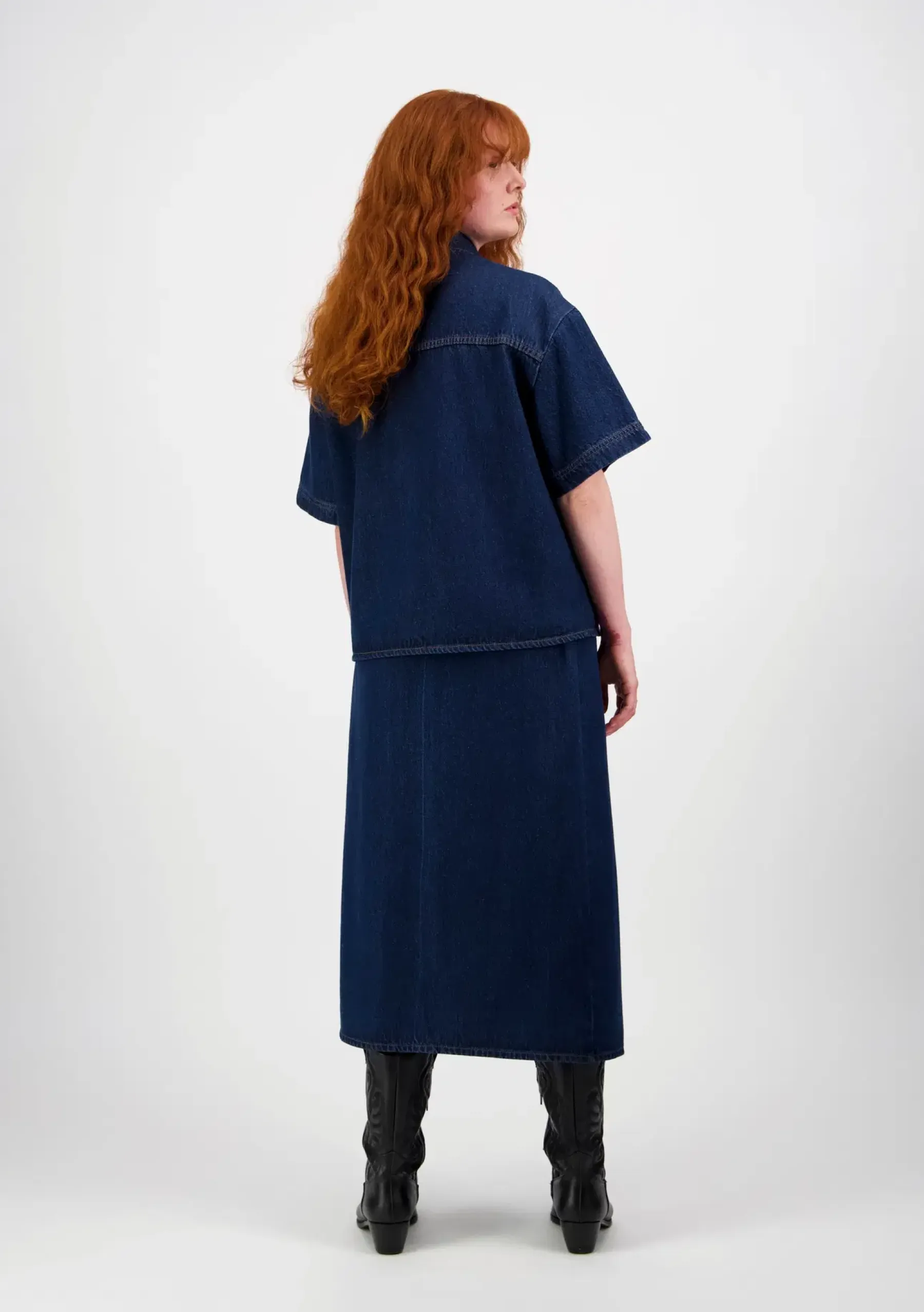 EMMY – rento kauluspaita, jossa yhdistyvät t-paidan huoleton fiilis ja klassisen paidan ryhdikkyys. Laadukas puuvilla-lyocell-sekoite tuntuu iholla kevyeltä ja hengittävältä – täydellinen valinta lämpimille päiville. Lyocell tuo materiaalille pehmeyttä ja viileyttä, mikä tekee paidasta erityisen miellyttävän päällä. Paidan laatikkomallinen siluetti, rennot hihat ja selkeä muotoilu tekevät siitä vaatekaapin monikäyttöisen suosikin. EMMY-paita toimii täydellisesti parina VIVI-hameen kanssa – sama materiaali, sama tummansininen sävy, sama huolettoman tyylikäs fiilis. Paita on suunniteltu Suomessa ja valmistettu MASI Jeansin omalla tehtaalla Virossa.