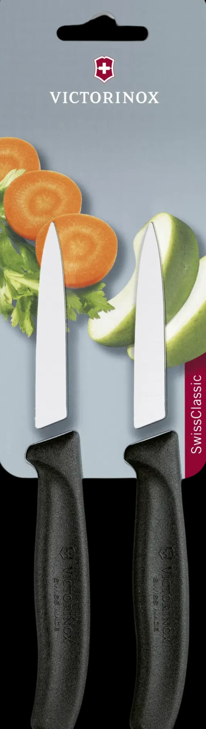 setti sisältää kaksi suorateräistä, teräväkärkistä kuorimaveistä