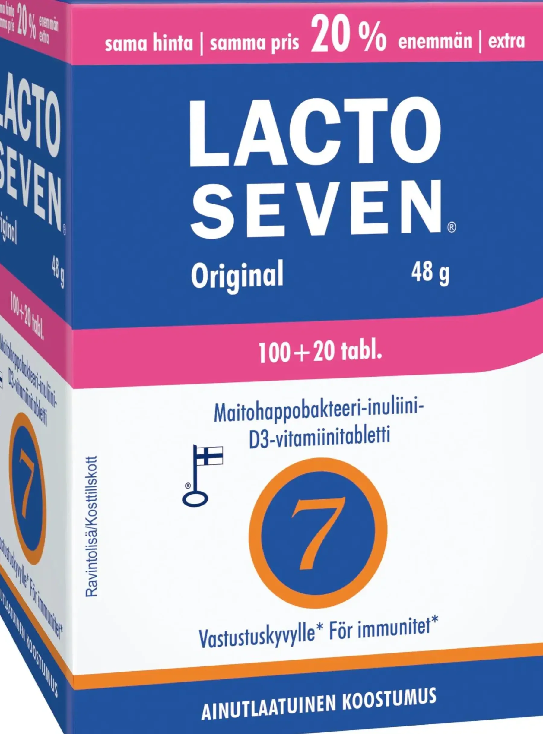 Kampanjapakkauks Lacto Seven 100 + 20 tablettia! Myynnissä vain rajoitetun ajan!
