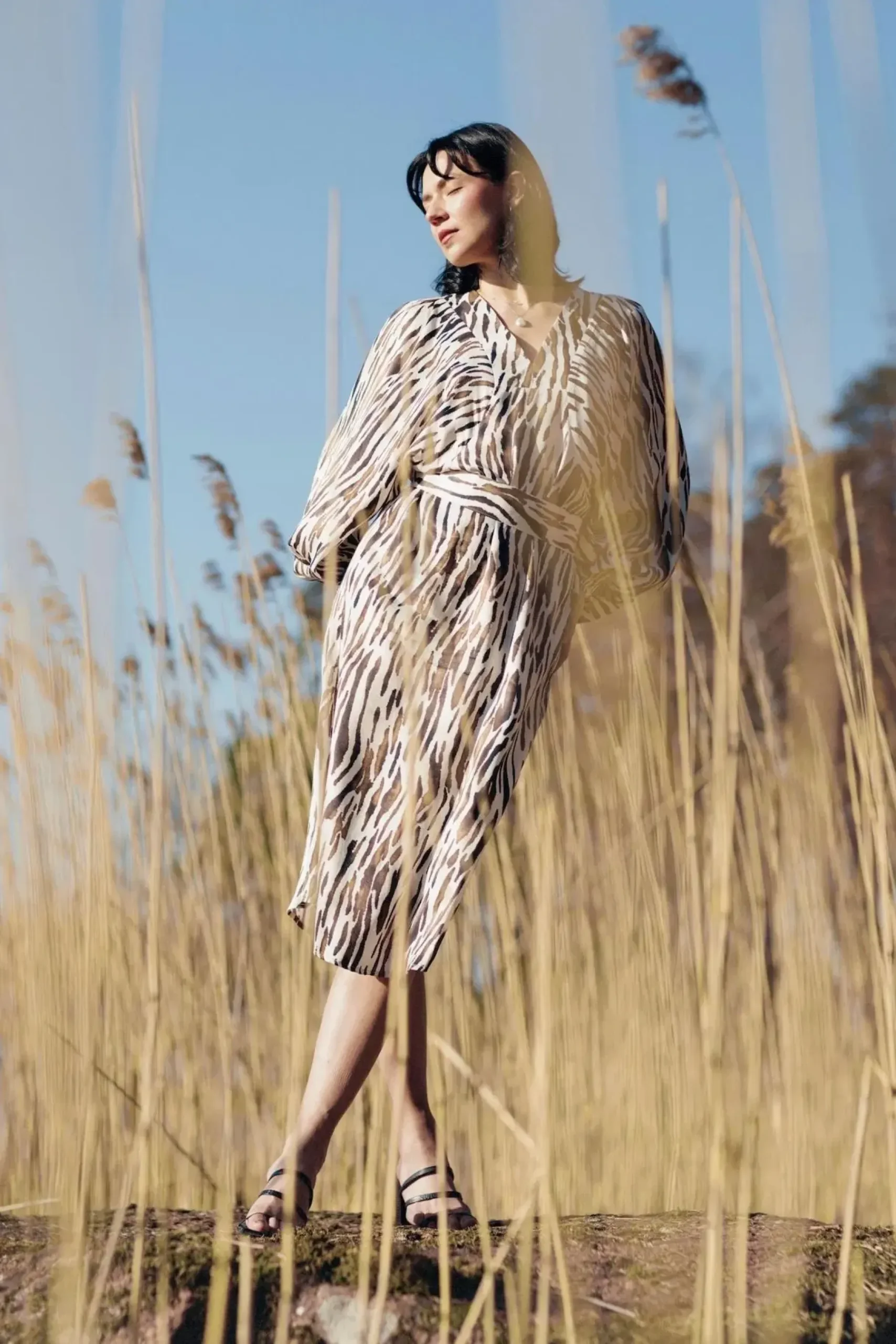 Kotimaisen Voglian upea Freija-mekko on valmistettu laadukkaasta, hennosti kiiltävästä satiinipintaisesta viskoosikankaasta. Mekossa on viehättävät puhvihihat ja irroitettava vyö. Materiaali tuntuu mukavalta päällä ja on helppo hoitaa. Freija-mekko sopii monenlaisiin juhlatilaisuuksiin.