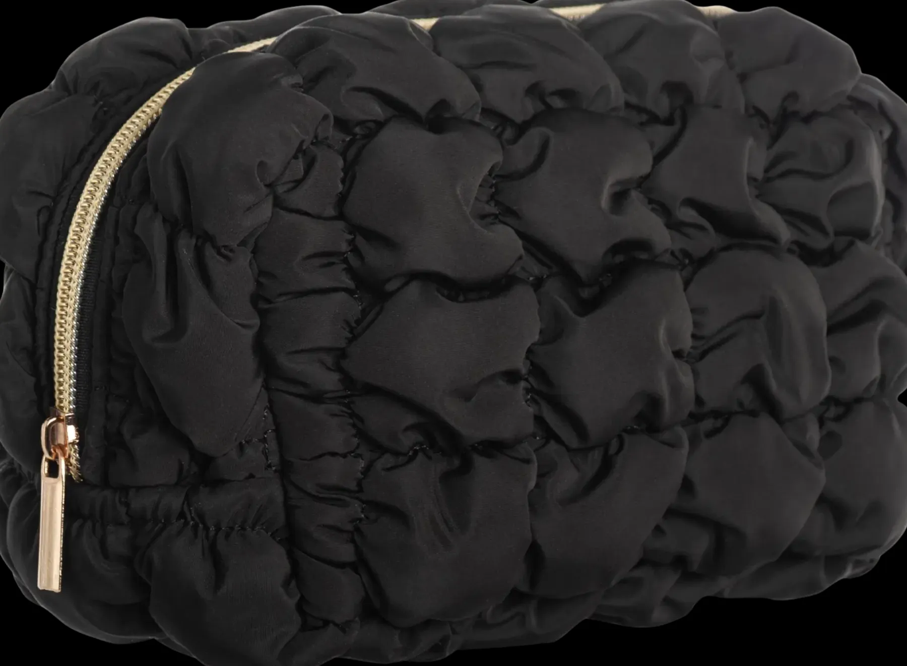 Suloiseen ja pehmeään puff-meikkipussiin mahtuu kaikki upeaan meikkiin tai ihonhoitorutiinin tarvittava! Pieni mutta tilava meikkipussi, kulkee tarvittaessa myös mukanasi reissun päällä.
