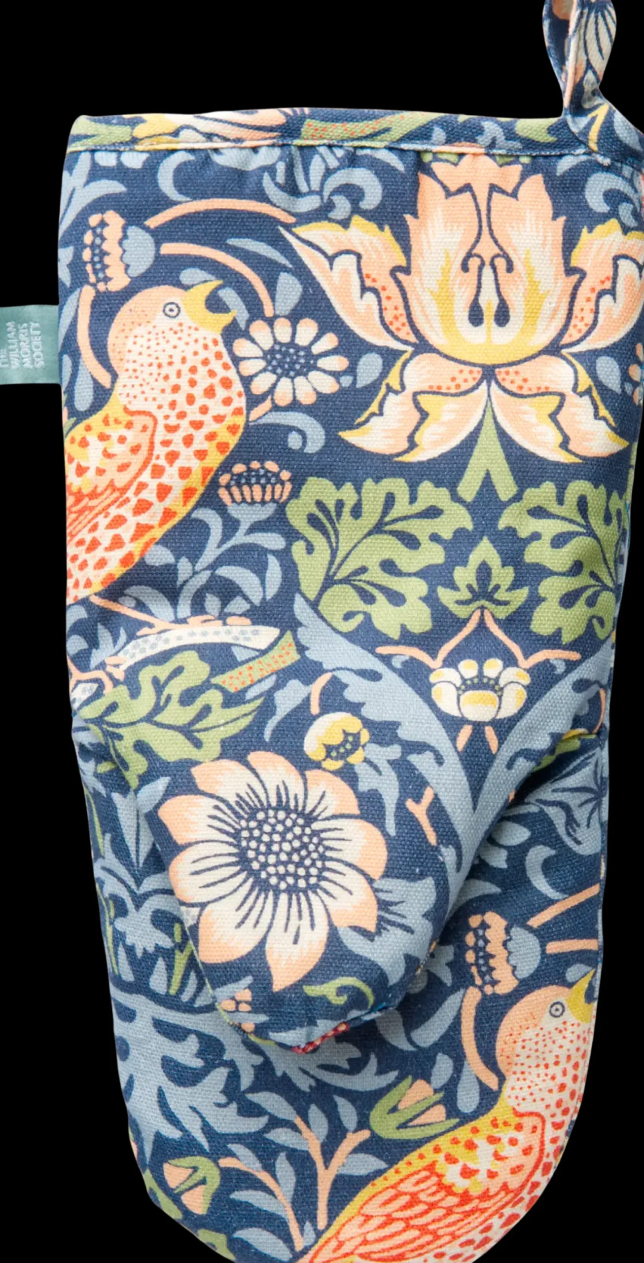 Patakinnas upeassa William Morris Strawberry Thief -kuosissa, tekstiili on Öko-text hyväksytty. Materiaali 100% puuvillaa, täyte 70% puuvillaa ja 30% polyesteria. William Morris patakintaat ja -laput on testattu kosketuslämmön osalta ja täyttävät kontaktikuumuuden luokan 2 vaatimukset.