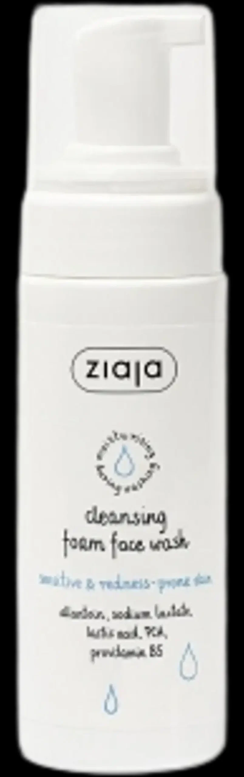 Öljytön Ziaja puhdistusvaahto herkälle ja punoittavalle iholle.