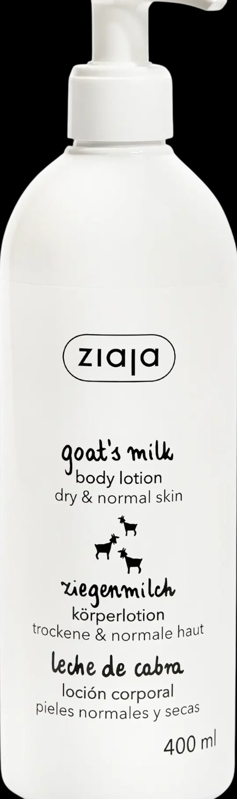 Ziaja Goat’s milk vuohenmaito vartalovoide kuivalle ja normaalille iholle. Sisältää ihoa ravitsevaa vuohenmaitoa ja rauhoittavaa D-pantenolia. Kätevä ja riittoisa 400 ml pumppupullo. Tekee ihosta pehmeän ja sileän tuntuisen. Voiteen ravitseva vesi-öljyssä emulsiokoostumus kosteuttaa tehokkaasti, mutta levittyy ja imeytyy helposti. Ei jätä tahmaista tunnetta iholle. Miellyttävä puhtautta henkivä tuoksu. Sisältää 95 % luonnollisia ainesosia. Testattu ihotautilääkärin valvonnassa. Iholle sopiva pH-arvo. Käyttö: Levitä vartalolle, anna imeytyä.