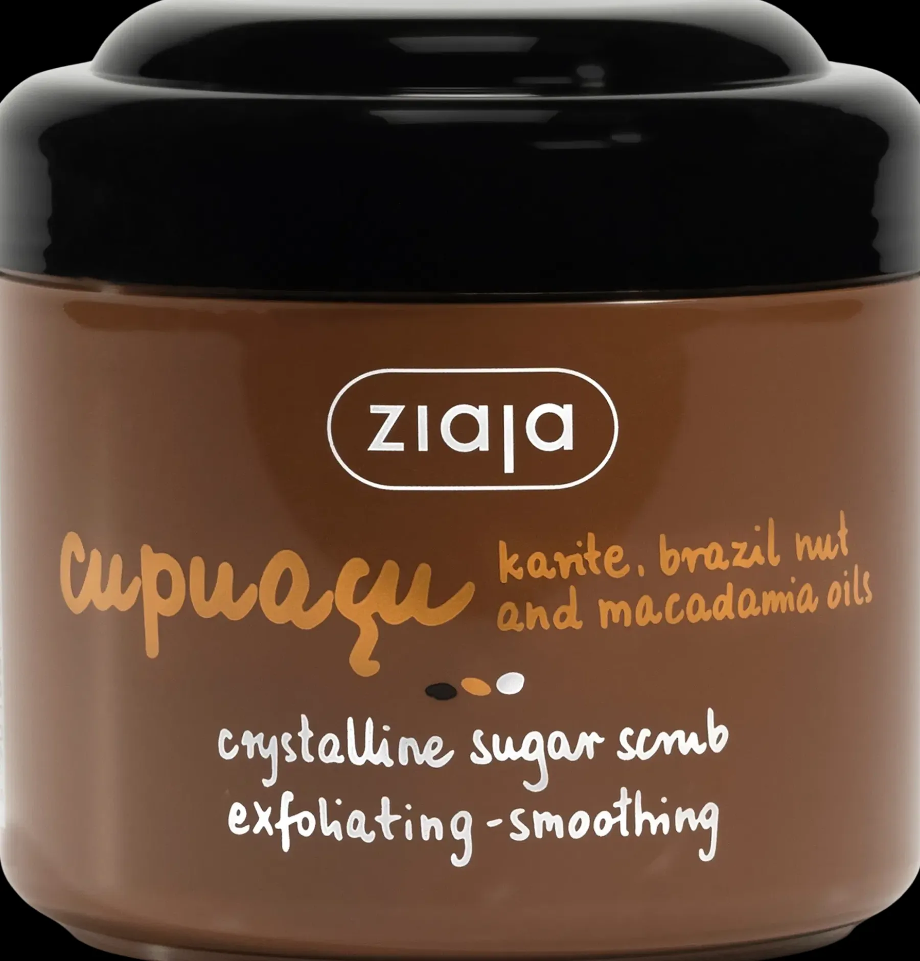 Elämyksellinen Ziaja Cupuacu sokerikuorinta koko vartalolle. Sopii kaikille ihotyypeille, erityisesti kuivalle ja karhealle iholle. Kristallisoitu sokeri yhdessä saksanpähkinän kuoriuutteen kanssa kuorivat vartalon ihon hellävaraisesti, mutta tehokkaasti. Amazonin superfood Cupuacu sisältää paljon iholle tärkeitä rasvahappoja, jotka pehmentävät, ravitsevat ja suojaavat ihoa. Sheavoi sekä brasilianpähkinä- ja makadamiaöljy kosteuttavat ja ravitsevat ihoa. Vähentää ihon karheutta ja kirkastaa sen sävyä. Jättää iholle ihanan sileän suojaavan pinnan. Herkullinen toffeen tuoksu! Testattu ihotautilääkärin valvonnassa. Käyttö: Levitä kostealle iholle, hiero pyörivin liikkein ja huuhtele. Sopii päivittäiseen käyttöön.