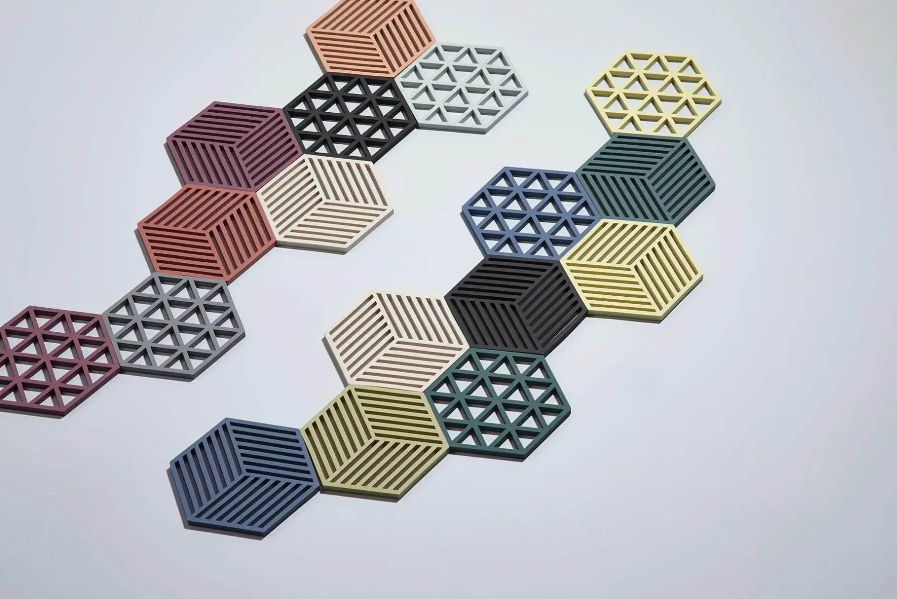 Silikonista valmistettu kuusikulmainen pannunalunen. Tuote kestää 250 astetta ja on astiapesukoneen kestävä.